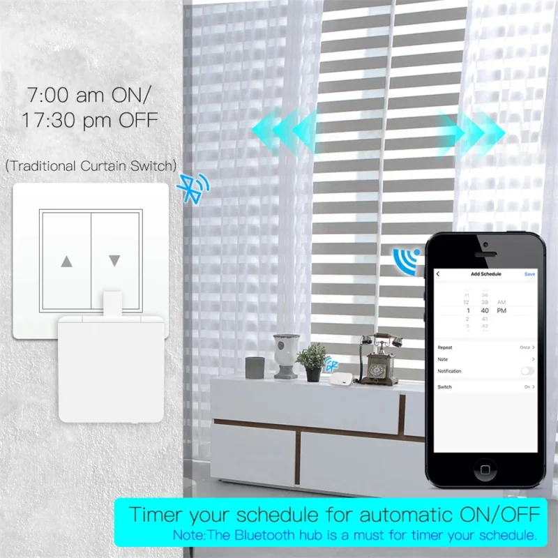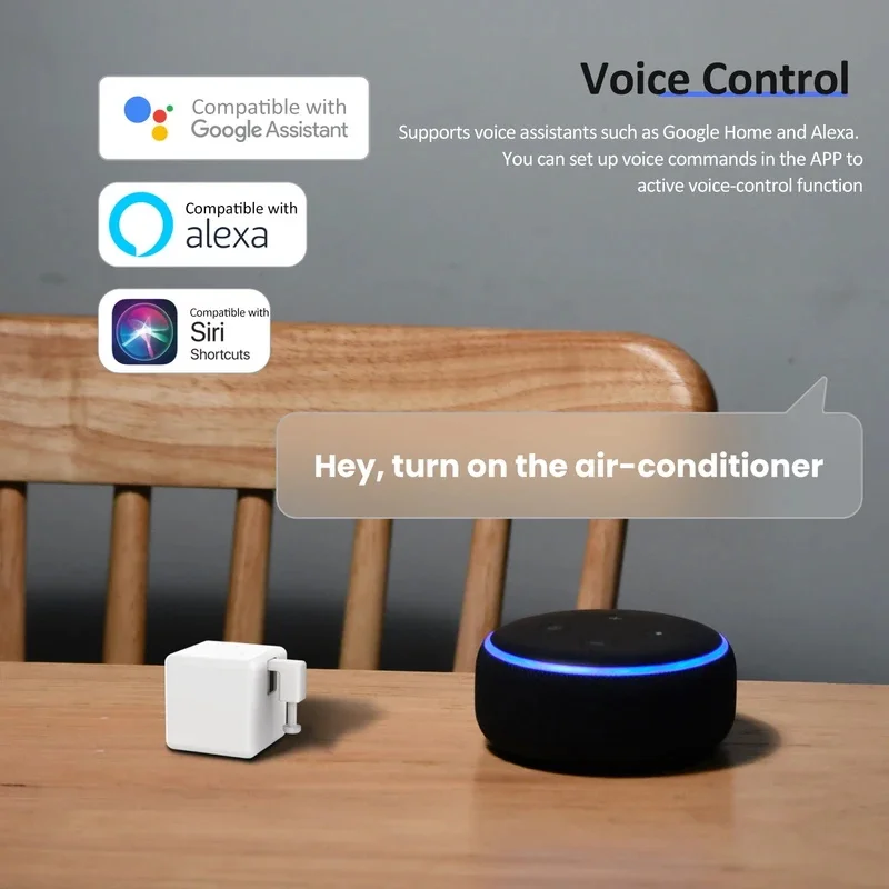 يعمل هذا الجهاز الصغير على الضغط تلقائيًا على الأزرار والمفاتيح مثل زر الإضاءة، ماكينة القهوة، الجرس، أو أي جهاز آخر — ويمكنك التحكم فيه بسهولة من خلال تطبيق الهاتف أو الأوامر الصوتية.